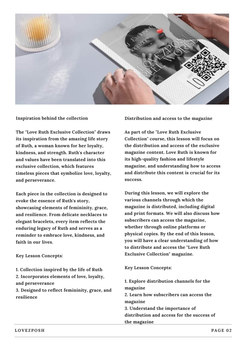 In this magazine, we will delve into the incredible story of Love Ruth, a Nigerian-Italian refugee who overcame numerous challenges to find a life of peace and fulfillment. Through this journey, we will explore themes of resilience, determination, and the power of love in the face of adversity. Through a combination of readings, discussions, and interactive activities, we will gain a deeper understanding of Love Ruth's experiences and the lessons we can learn from her story.